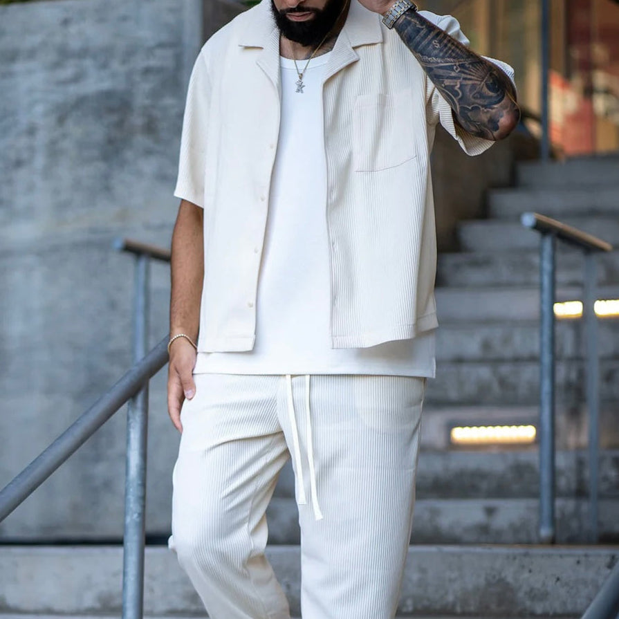 Polyvalent, ce set peut se porter ensemble ou séparément. Idéal pour les journées en ville, un dîner en terrasse ou un événement en bord de mer. C’est une pièce qui s’adapte à ton rythme.